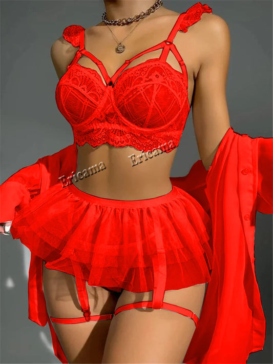 Sexy Lingerie Fancy Lace Eroticу Set Woman 3 Pieces Transparent Women's Underwear Embroidery Erotic Beautiful Bra And Panty Sets